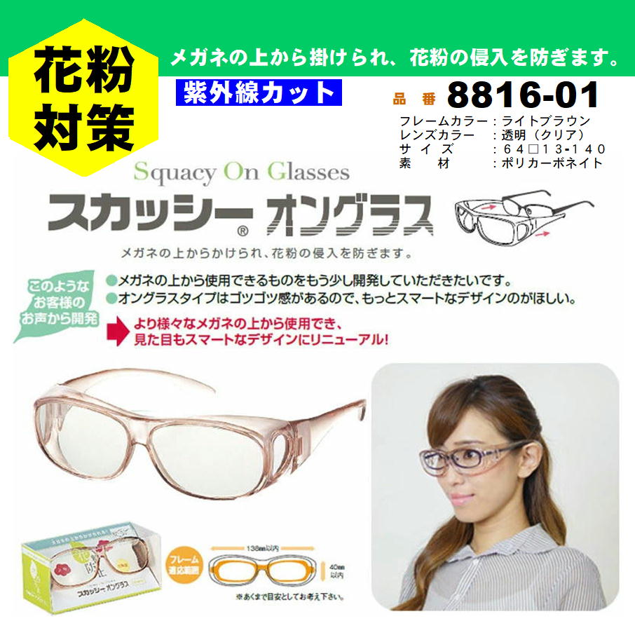 メガネの上から掛けて、花粉の侵入を防ぎます。