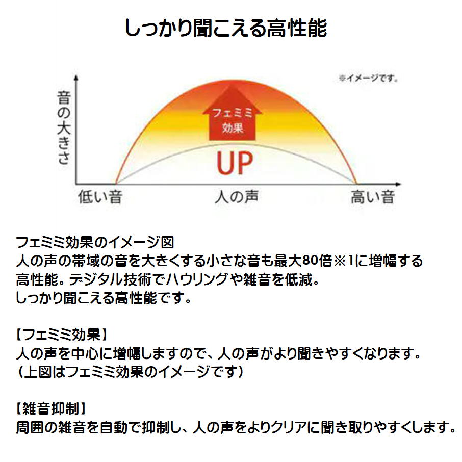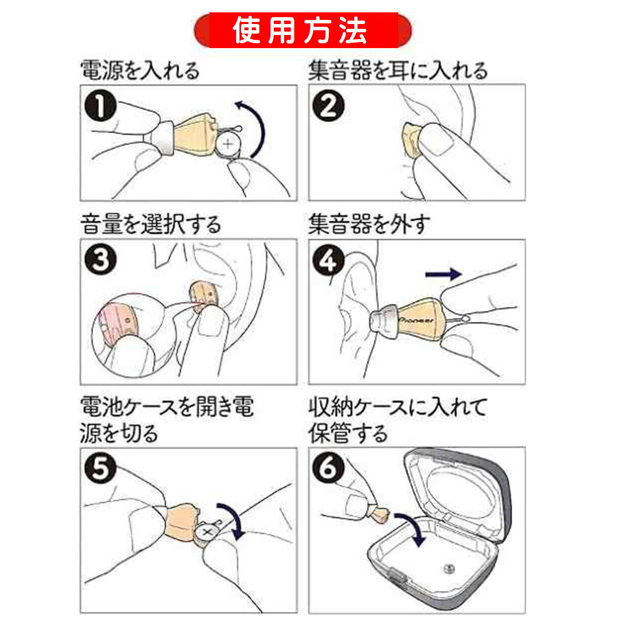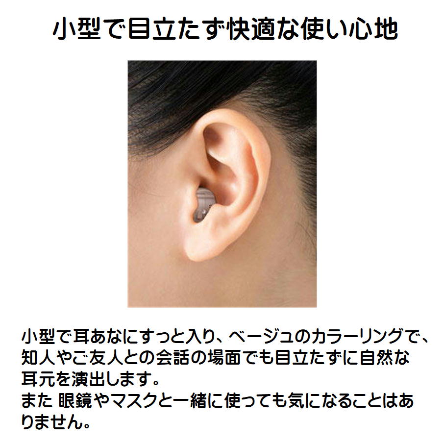 注意点※ 耳あな型デジタル集音器ですので、細かい調整が必要です。使用前に取扱説明書を読んで正しく調整してください。ご購入後の不具合には対応致しかねますので、予めご了承ください。快適な聞こえ方を実現したい場合は、定期的なメンテナンスをおすすめします。
