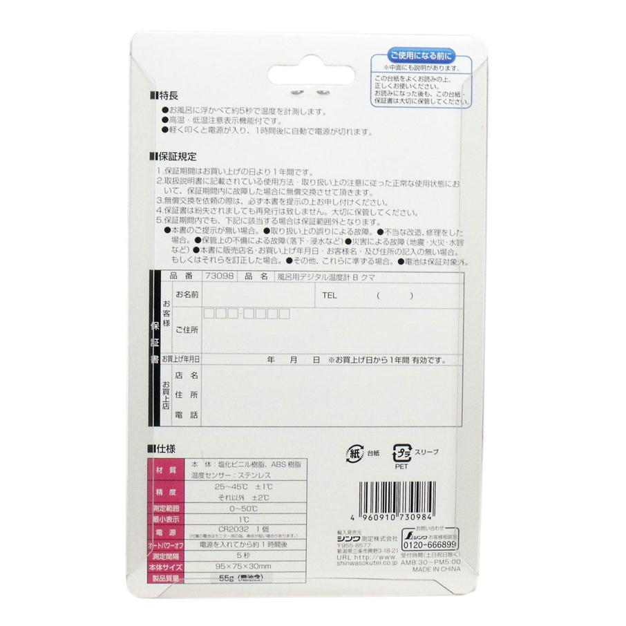 ●お風呂に浮かべて約5秒で温度を計測します。